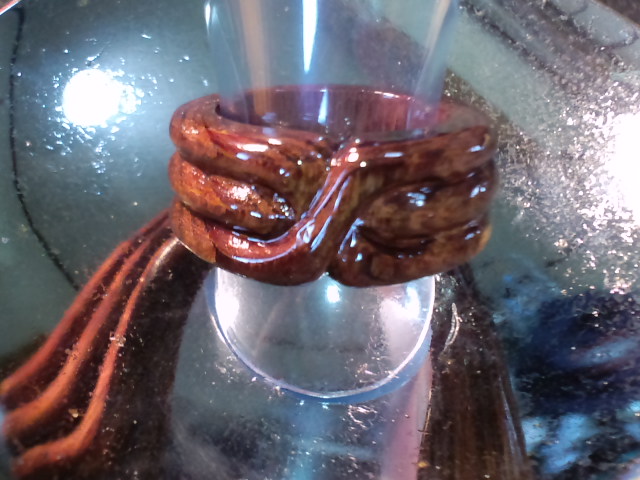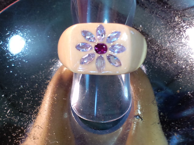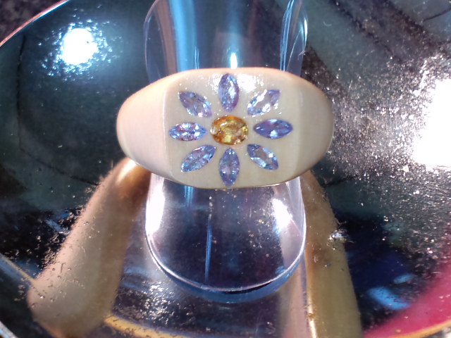 TOPに大きなブルートパーズ(13-8mm/3.38CT)をはめこんだ、シンプルなデザインになっています。
