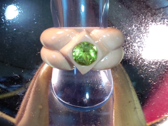 二つのラインがTOPのペリドット(7mm-1.20CT)を挟み込むデザインになっています。