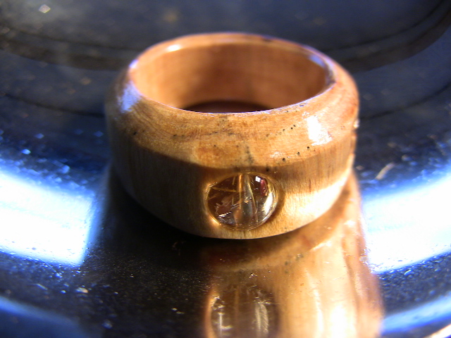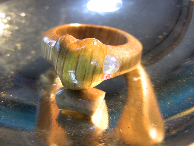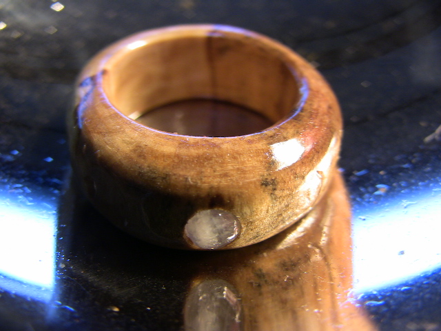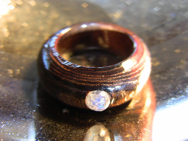 TOPにブルームーンストーンを嵌め込んだシンプルなモデルです。青いシラー効果がとても綺麗です。(木固めエース使用。) 防水性あり。