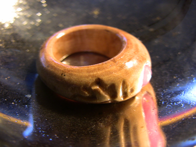 TOPにラブラドライトを嵌め込んだシンプルなデザインになっています。ラブラドライトの遊色効果がとても綺麗です。(木固めエース使用。) 防水性あり。