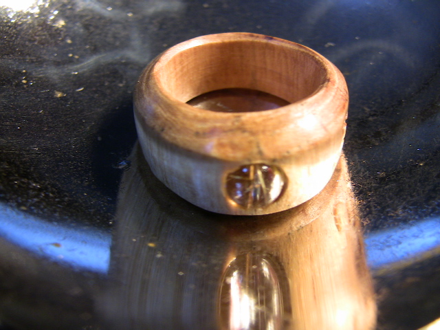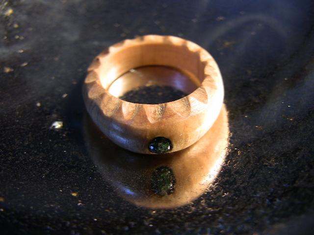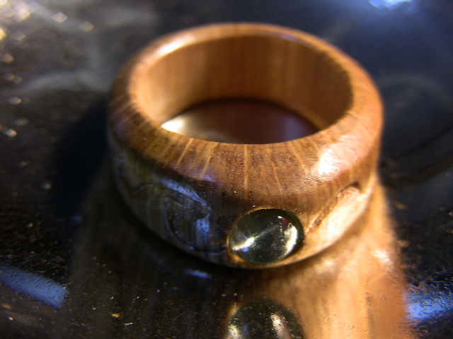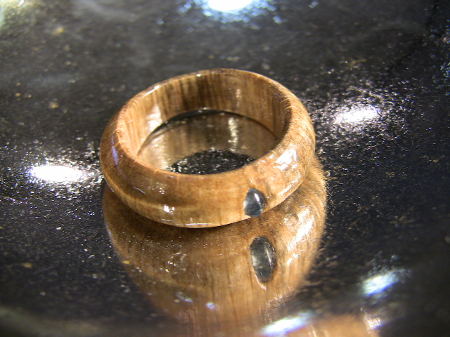 TOPにブルーサファイアを嵌め込んだ、超シンプルなデザインになっています。(木固めエース使用。)