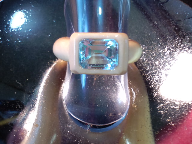 TOPに大きなブルートパーズ(13-8mm/3.38CT)をはめこんだ、シンプルなデザインになっています。