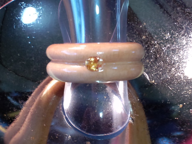 二つのリングを重ね合わせた形で、シトリンを挟み込んだデザインになっています。