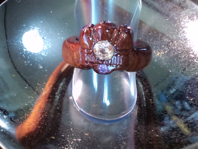 TOPに王冠の形を彫り込み、中心にジルコン(4mm-0.98ct)をはめ込み、周囲にアメジストを4個あしらってあります。